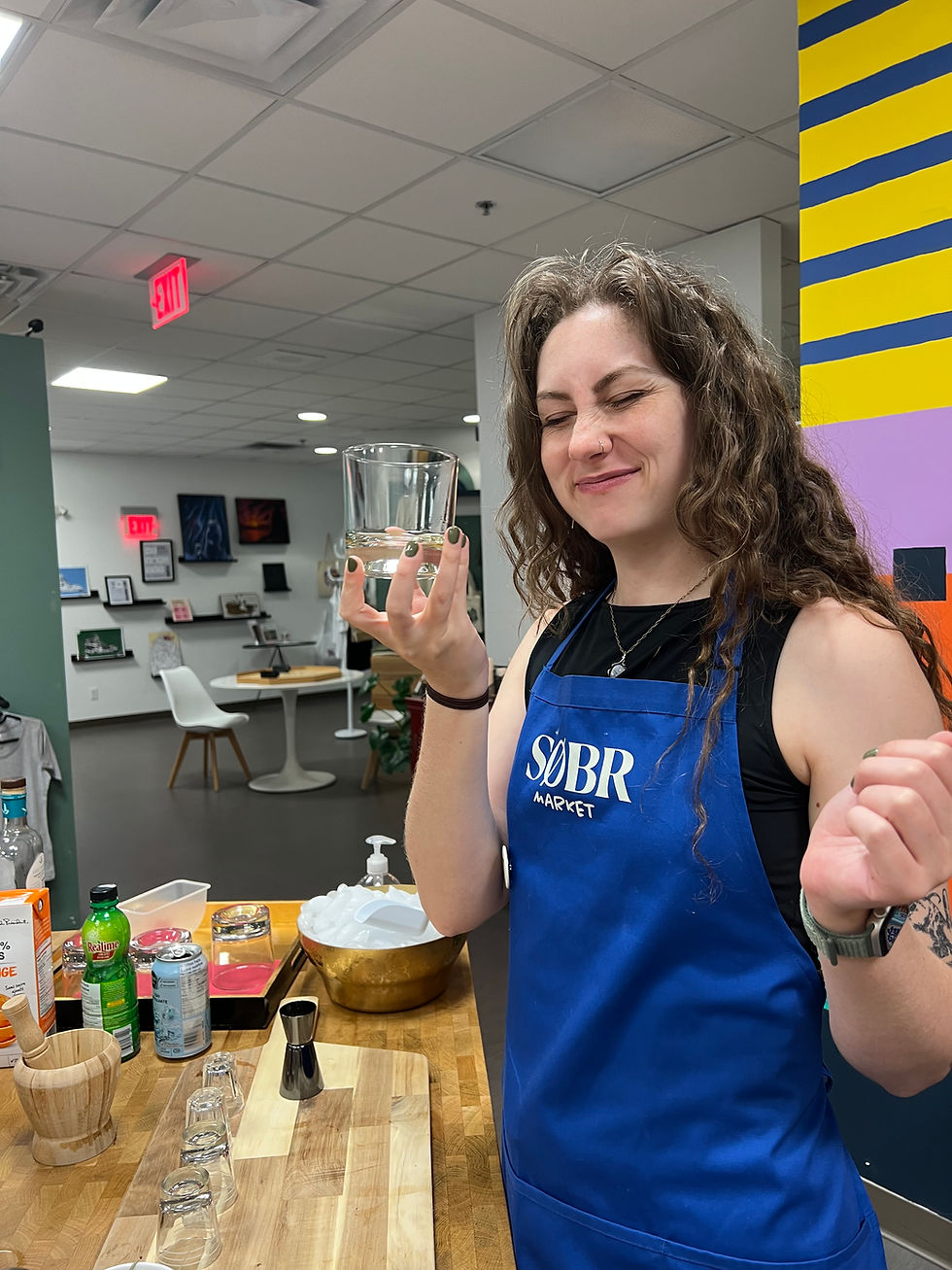 A playful combo experience: mix a zero-proof drink, then design a mug to match the vibe.